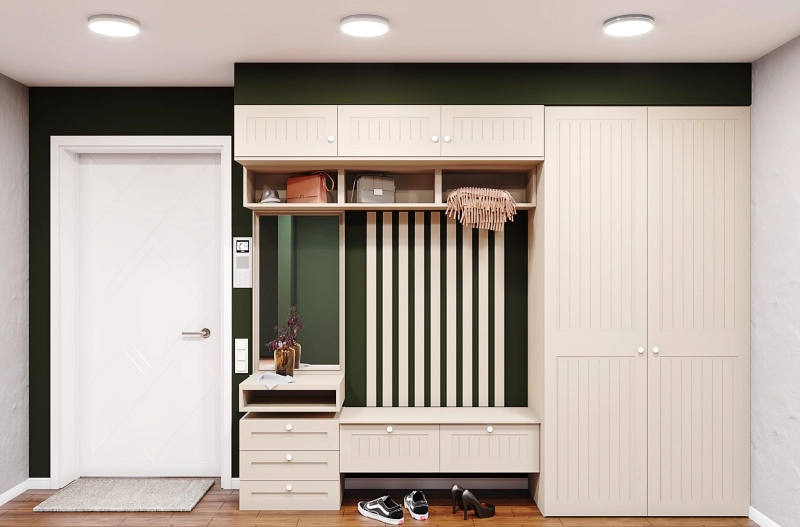 - Зона для хранения верхней одежды - шкафы, вешалки, крючки на стене.
