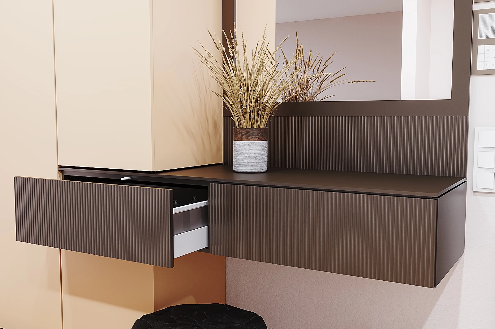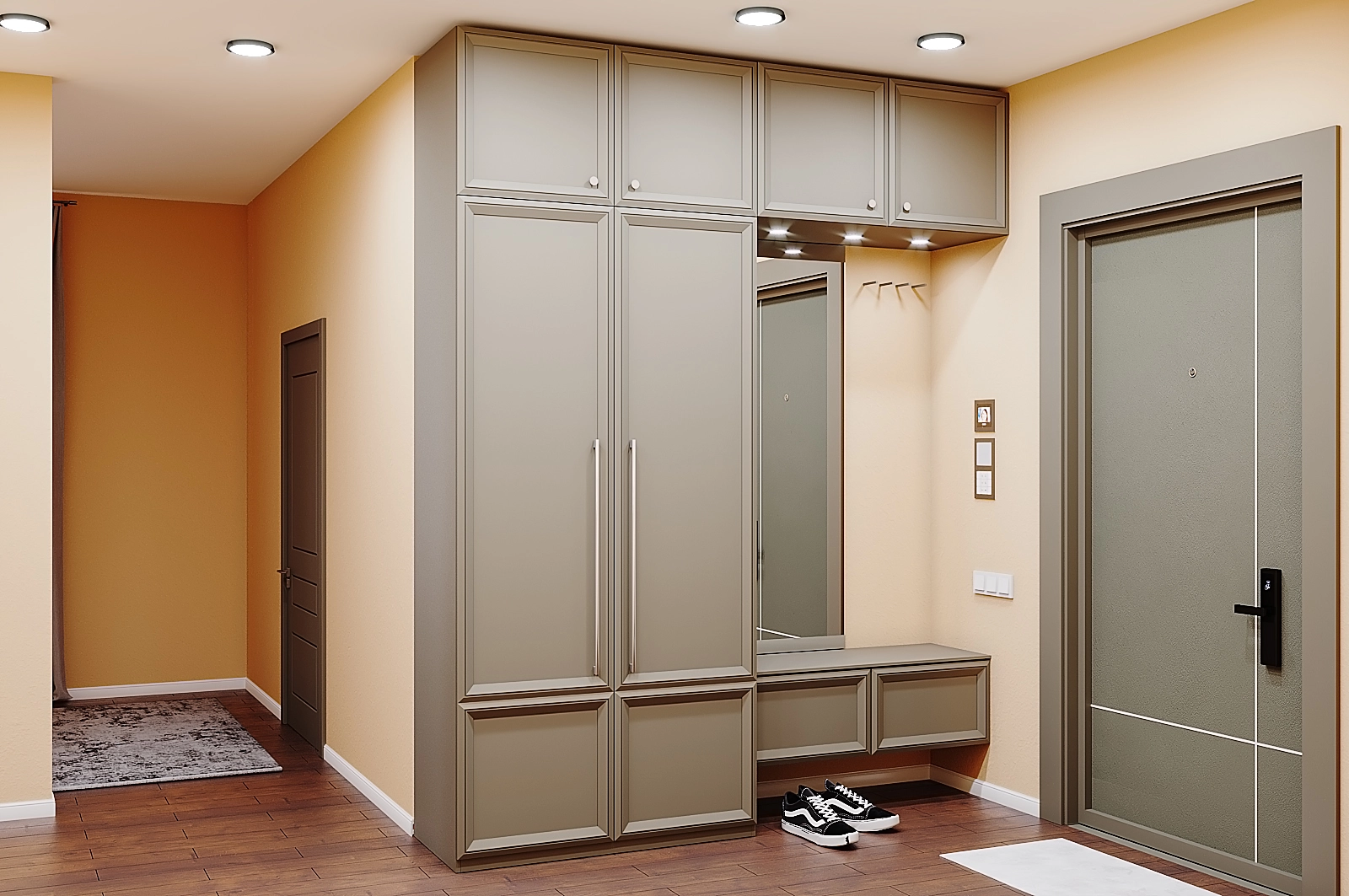 Как правило, прихожая имеет множество функциональных и подвижных элементов. Используются как подходящие под габариты крупной одежды шкафы, так и места для хранения обуви, полки для аксессуаров и многие другие части. Важно, что бы фурнитура и оформление фасадов отвечало требованиям качества, однако, не стоит забывать и о том, что оформление мебели оказывает влияние на интерьерное решение всего помещения. Мебель прихожей следует подбирать, исходя из идеи подчеркнуть с помощью неё стилевое решение и создать правильный визуальный акцент.